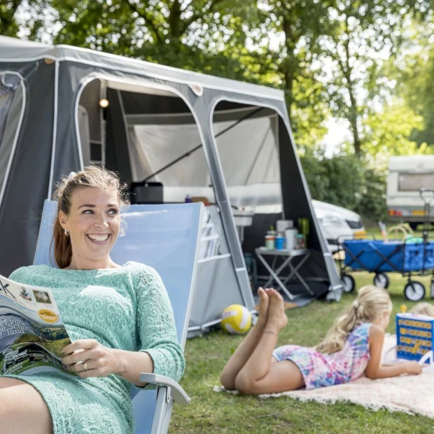 Gezellige 5-sterren familiecamping met overdekt zwembad aan een groot recreatiemeer in Zeeuws-Vlaanderen.