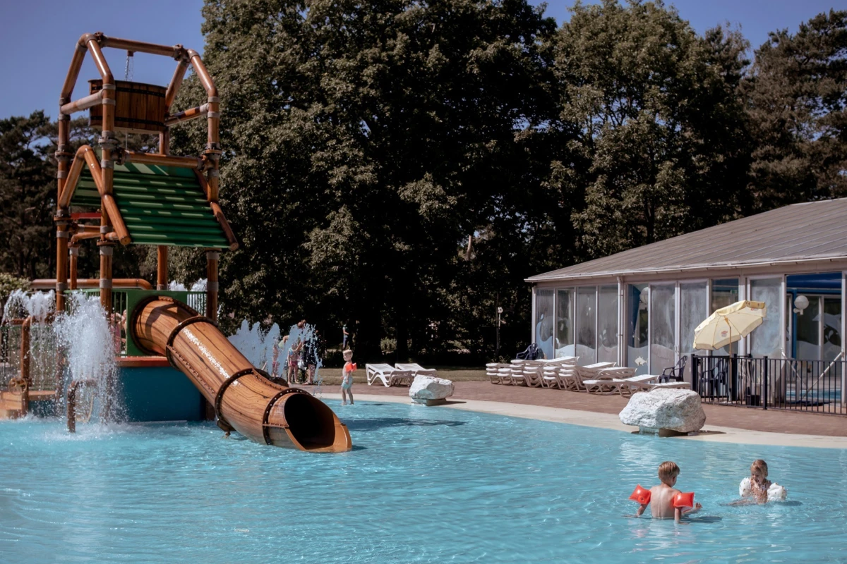 5-sterren familiecamping midden in een bosachtig natuurgebied met water- en zandspeelparadijs.