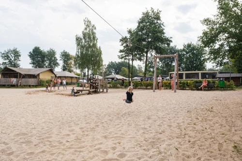 - Buitenspeeltuin met schommels, trampolines, torens en klimnetten.